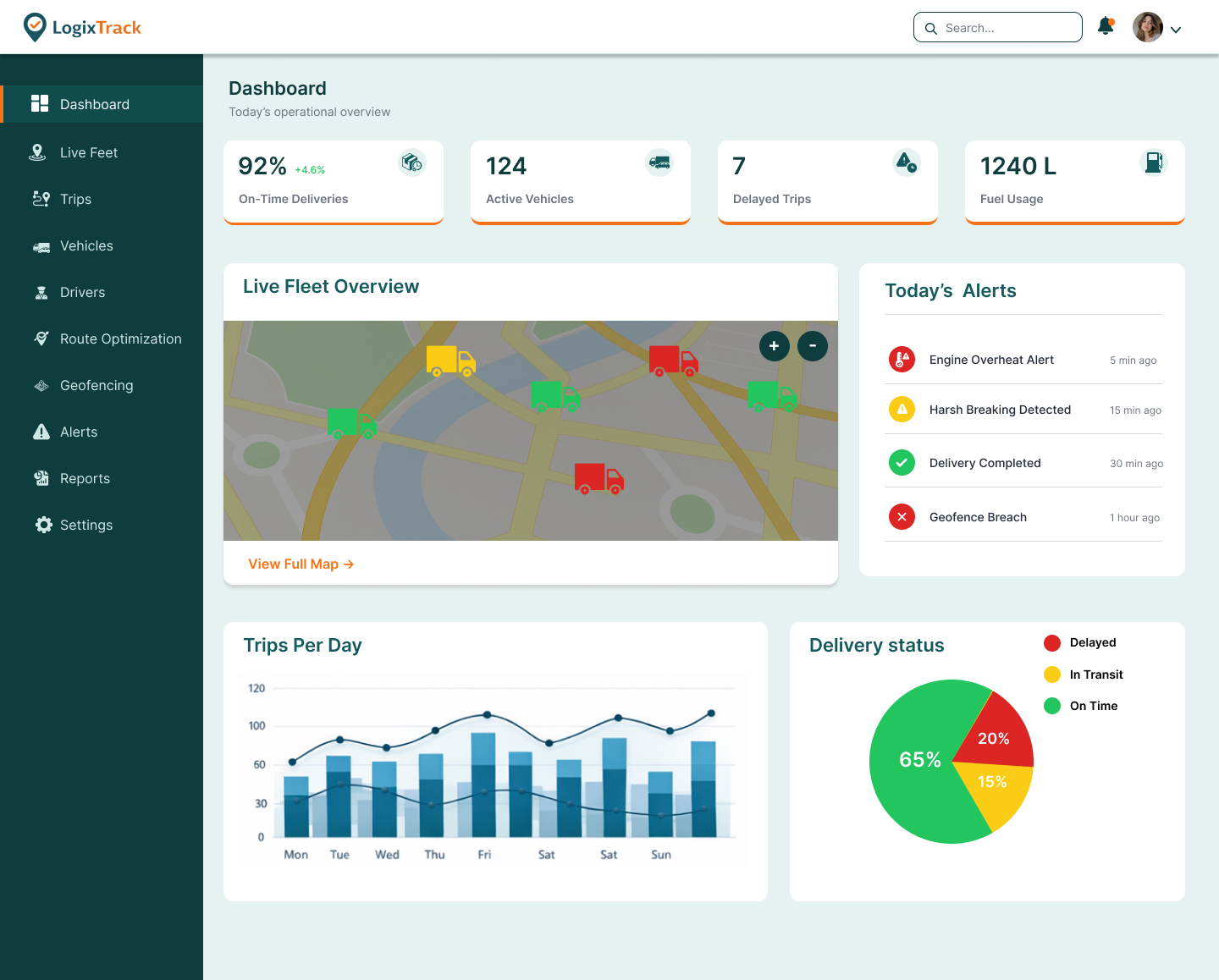 Track KPIs like on-time delivery rate, fuel usage, and operational efficiency.